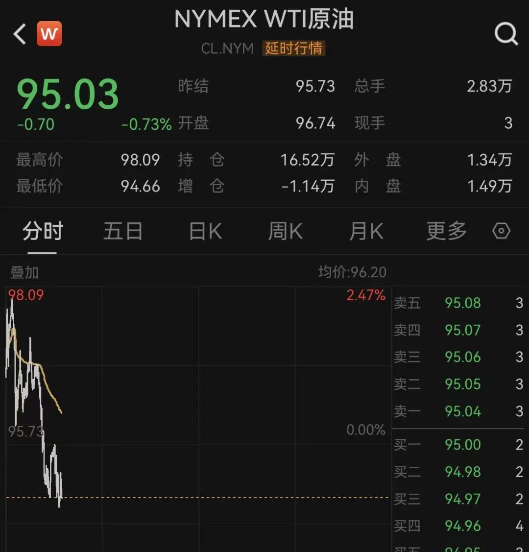 剛剛,WTI原油與布倫特原油集體直線跳水,截至發稿全部翻綠。