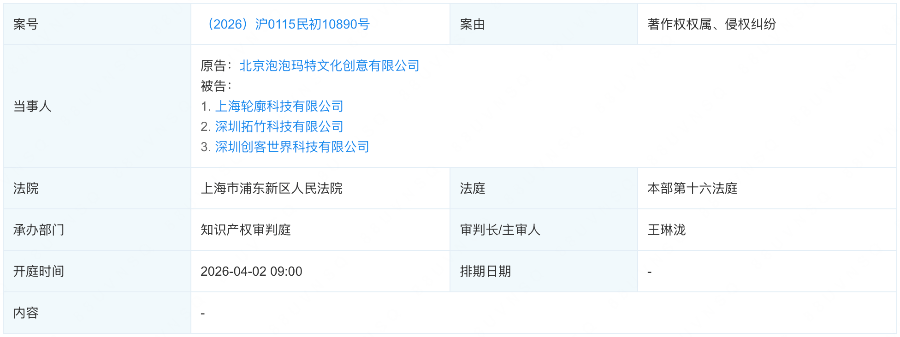 目前,該案已由上海市浦東新區(qū)人民法院受理,開庭時(shí)間確定為2026年4月2日。